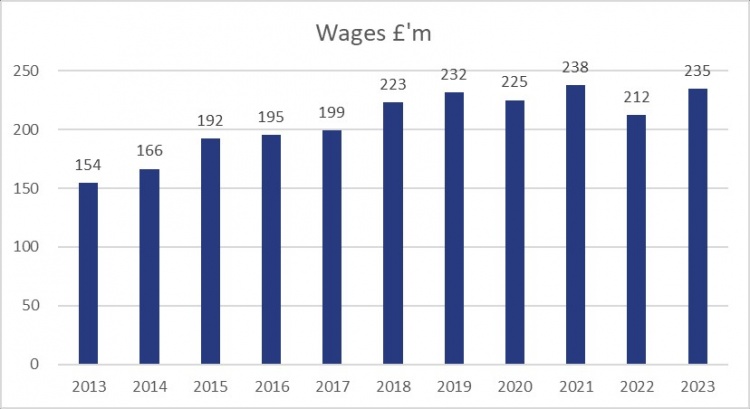阿森纳最大的成本是工资(2.35亿英镑),占收入的50%。阿森纳员工总数的增加至649人,排名前四也使得奖金出现11%的增长,球员平均每周的工资为11.2 万英镑。