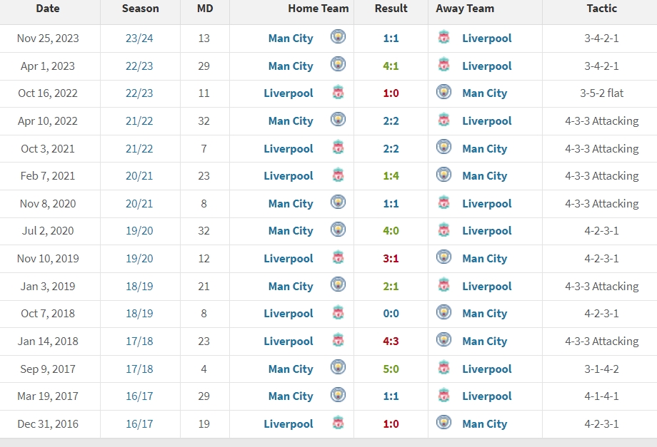 从16/17赛季至今,双方在联赛共交手15场,瓜迪奥拉5胜,克洛普4胜,双方战平6次。