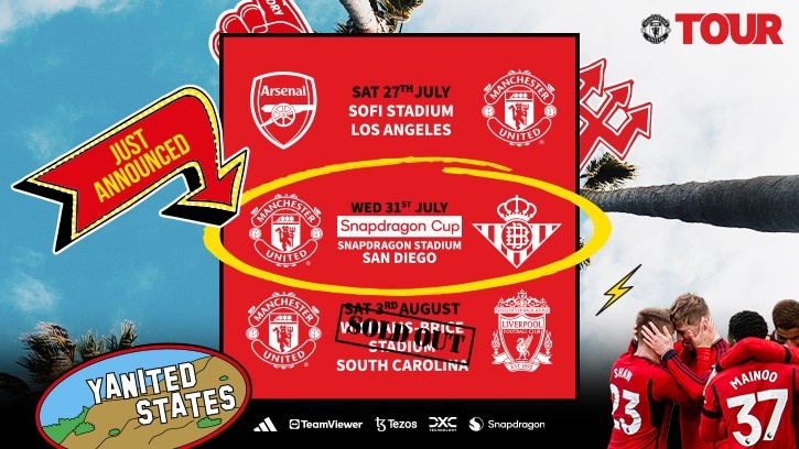 3月13日消息 今年夏歇期,曼联将继续前往美国进行季前热身赛。今天,曼联更新了美国行的赛程,球队将在骁龙杯中对阵贝蒂斯。
