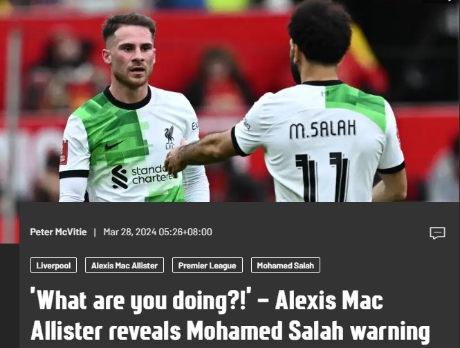 3月28日消息 利物浦中场麦卡利斯特接受采访时讲述了一件趣事,他第一次穿着长裤参加红军的训练时,被萨拉赫“教训”了。
