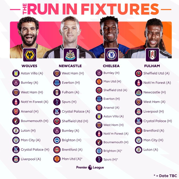 狼队、纽卡、切尔西、富勒姆剩余赛程