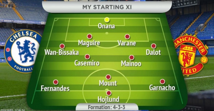 4月4日消息 在客战切尔西的比赛前,《曼彻斯特晚报》主编Samuel Luckhurst预测了曼联可能的首发阵容,霍伊伦领衔锋线,马奎尔&瓦拉内搭档中卫,芒特先发出战。