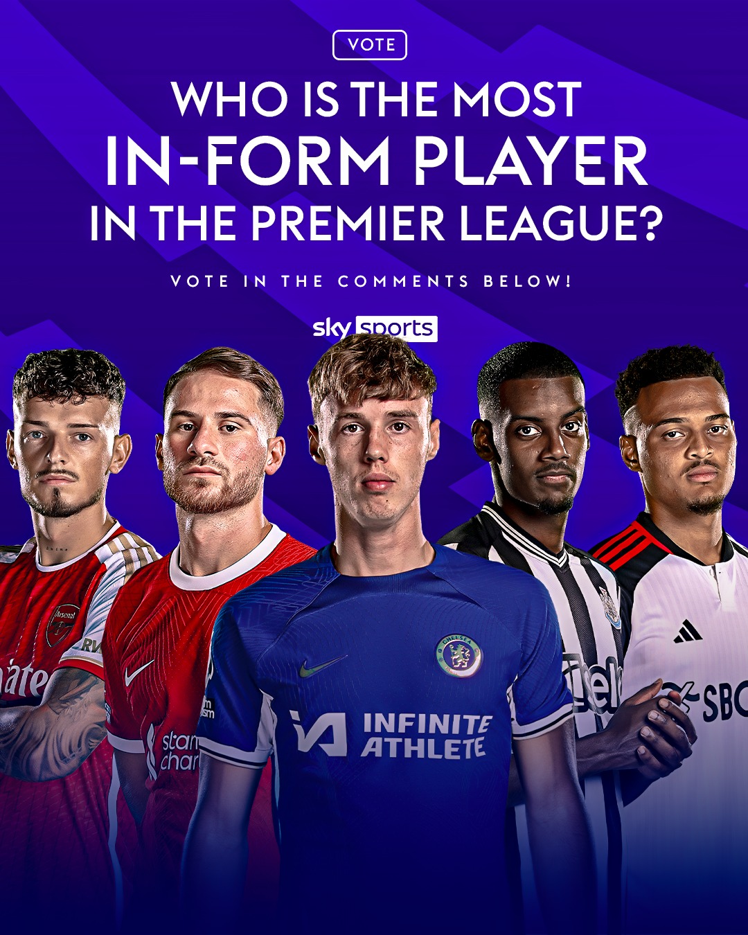 帕尔默、麦卡、本-怀特......你觉得目前英超状态最出色的是谁?