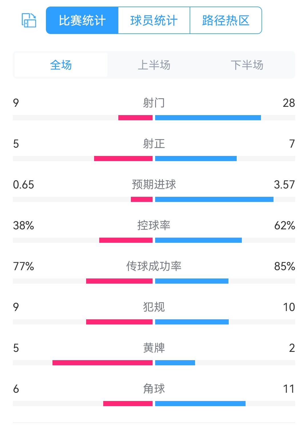 控球率:38%-62%
