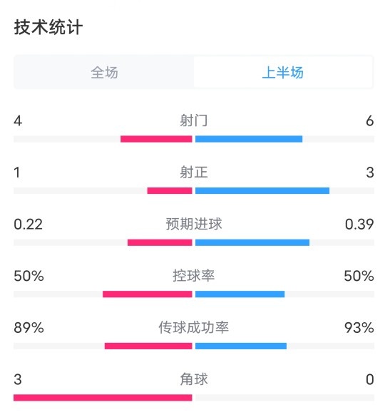 半场数据如下(拜仁在前):