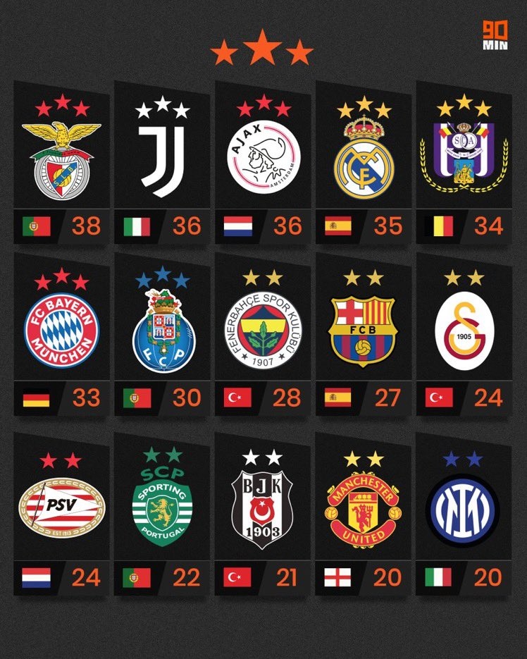 欧洲足坛“双星”“三星”俱乐部:国米摘取第二颗星⭐⭐