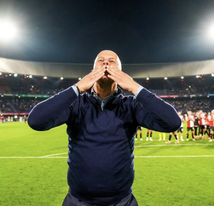5月6日消息 费耶诺德5-0战胜兹沃勒,赛后,费耶诺德主帅斯洛特向全场观众致意。