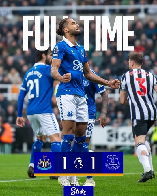 纽卡英超1-1平埃弗顿,伊萨克破门,勒温点射绝平结束23场进球荒