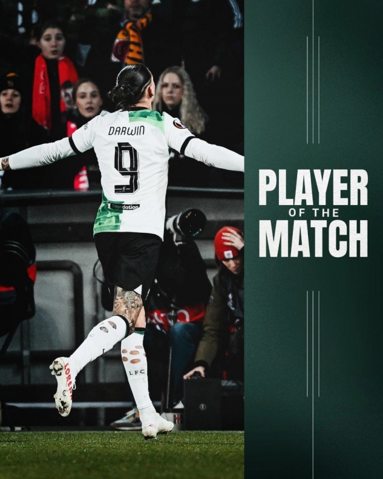 双响助大胜!利物浦官方:努涅斯当选战布拉格斯巴达全场最佳