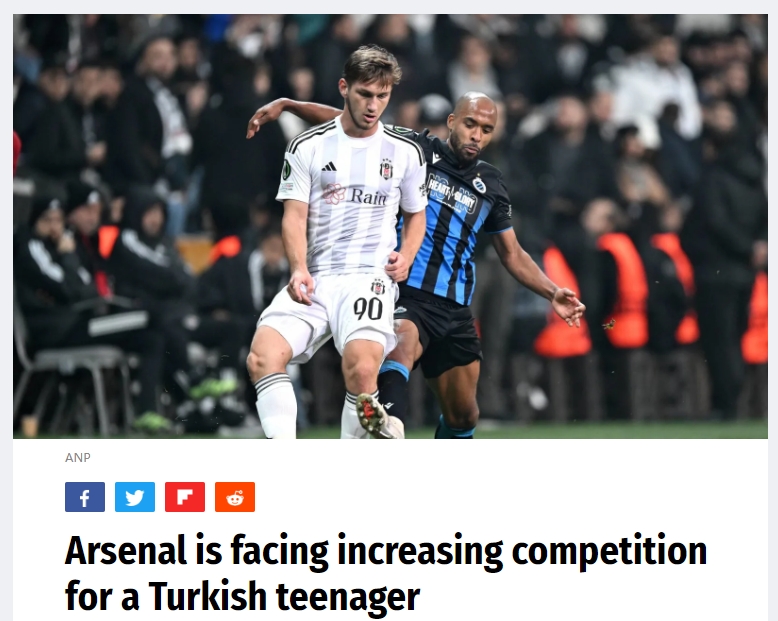 外媒:阿森纳有意贝西克塔斯18岁新星,但面临曼城及热刺等队竞争