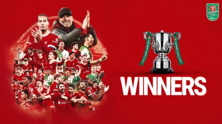 赢下大对决!利物浦绝杀夺联赛杯,麦卡手持升级卡片与奖杯合影