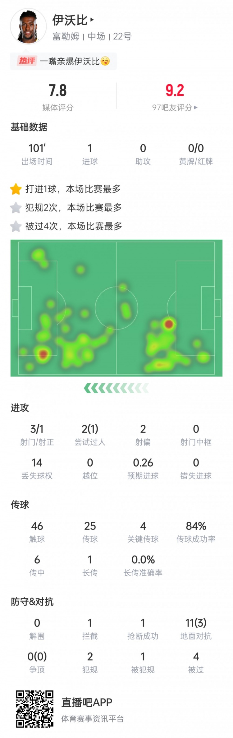 一脚攻陷梦剧场!伊沃比数据:1进球4关键传球,获评7.8分