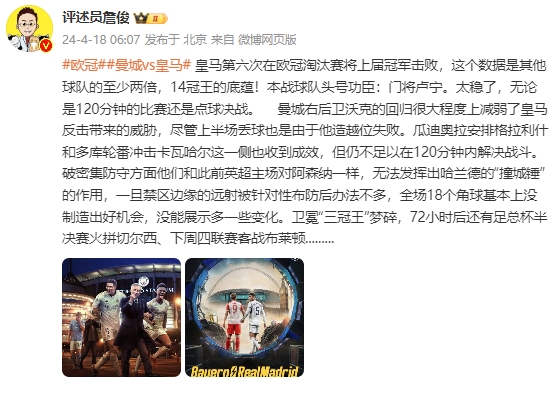 詹俊:皇马有14冠王底蕴!曼城卫冕3冠王梦碎 72小时后火拼切尔西
