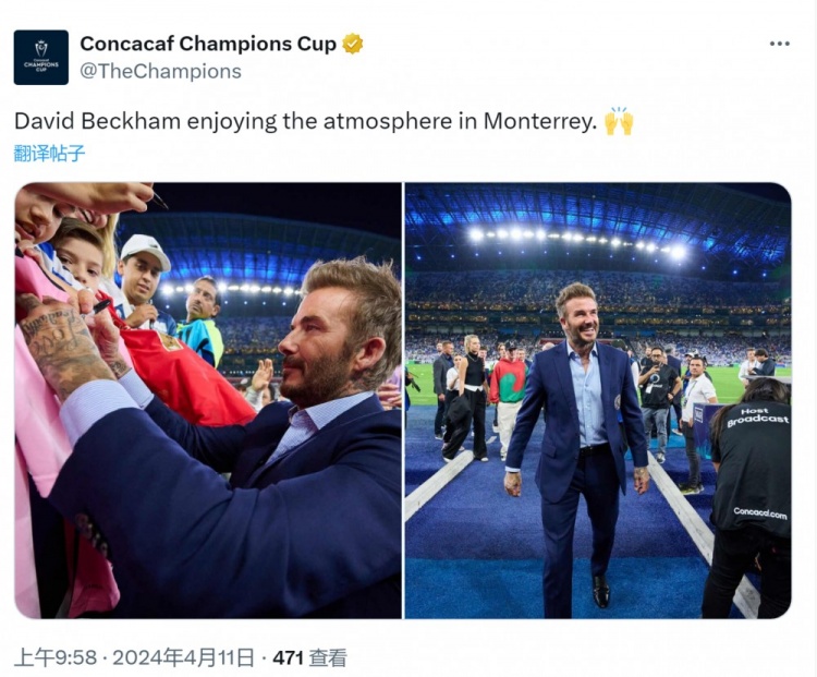 仍是万人迷!贝克汉姆随迈阿密国际来到客场,在球场内为球迷签名