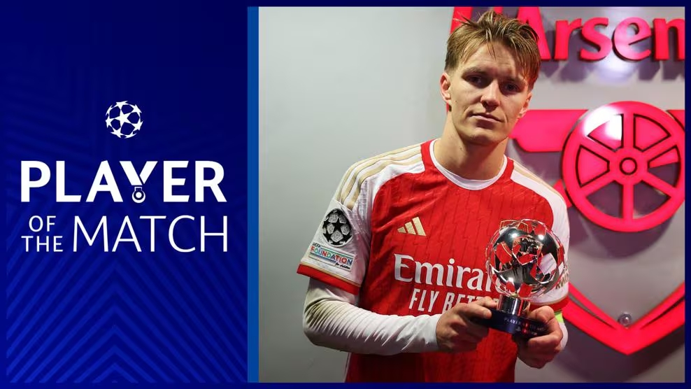 全场飞奔!欧冠官方:厄德高当选阿森纳2-2拜仁全场最佳