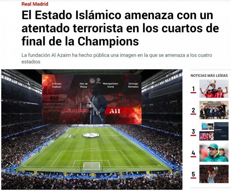 ISIS再发威胁图片,目标是本周举行欧冠淘汰赛的四个球场