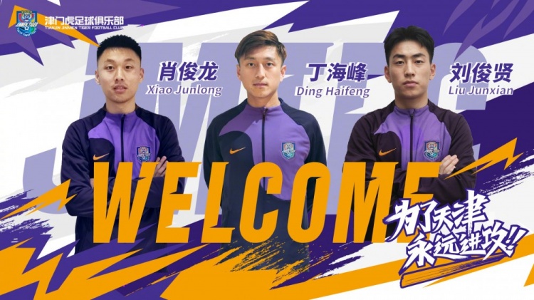 我们高兴地宣布,丁海峰、刘俊贤、肖俊龙三名球员正式加盟津门虎足球俱乐部,期待他们在新赛季的精彩表现!