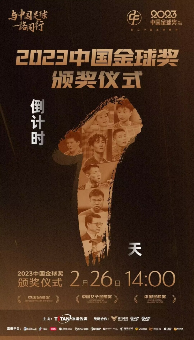 2月25日消息 明天下午14点将进行2023中国金球奖颁奖仪式,届时将评选出中国金球奖、中国女子金球奖、中国金帅奖等诸多奖项。