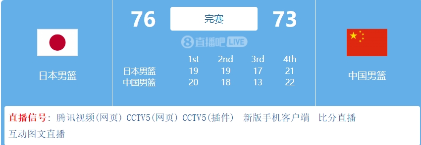 02月25日消息 男篮亚洲杯预选赛,中国男篮客场73-76不敌日本!这是中国男篮自1936年奥运会之后,88年以来首次在FIBA亚洲及以上级别比赛输给日本。
