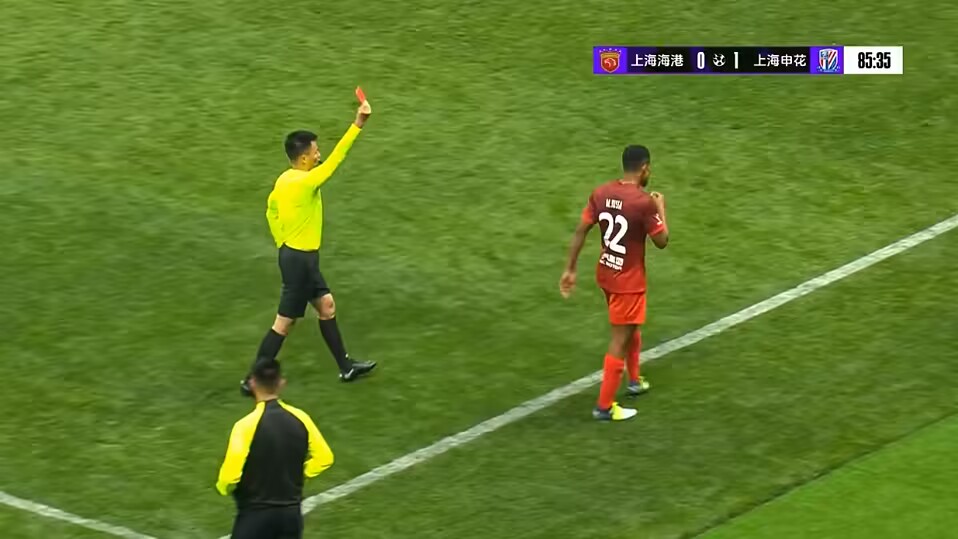 2月25日消息 中国超级杯,上海海港vs上海申花。下半场第86分钟,海港新援茹萨两黄变一红,首秀就吃到红牌。