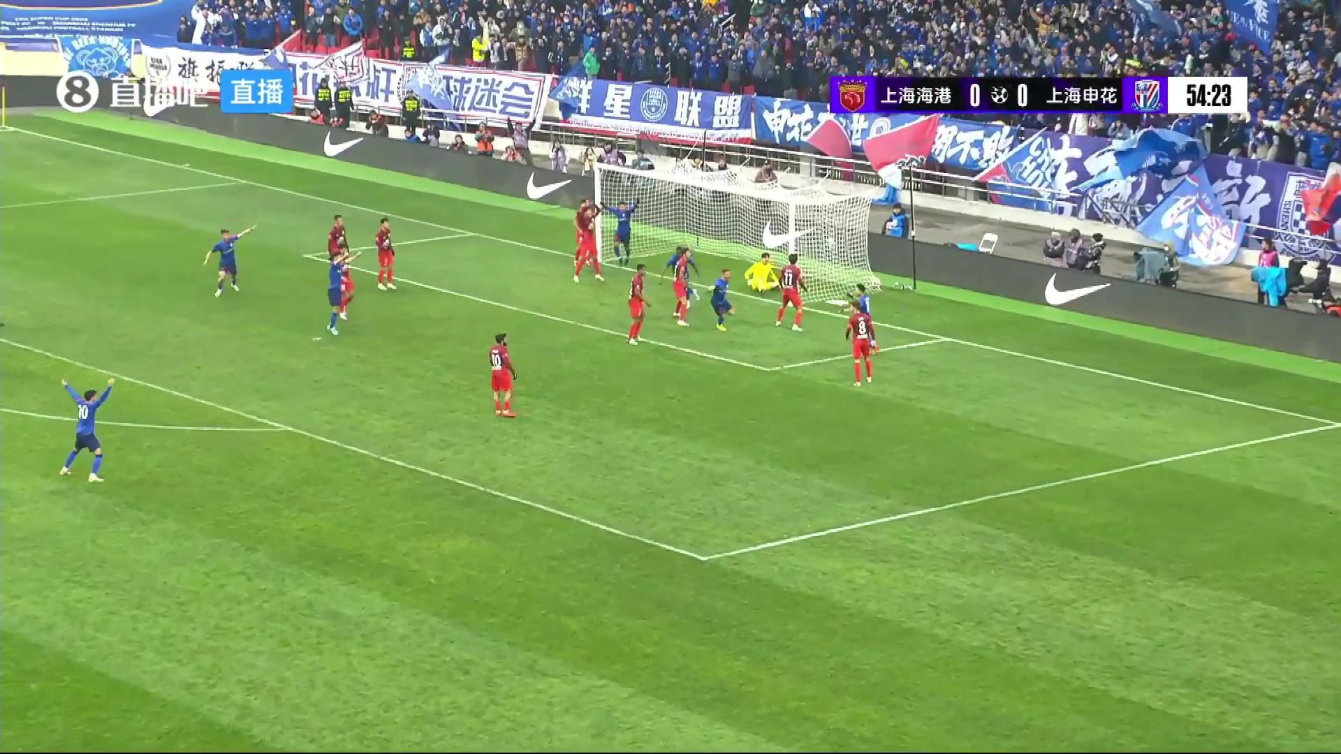 2月25日消息 中国超级杯,上海海港vs上海申花。下半场第54分钟,马莱莱破门申花1-0领先!