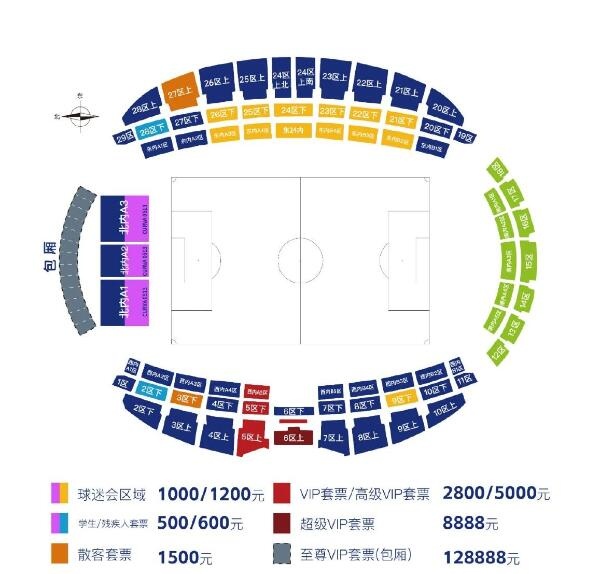 球迷会套票:1680元、2580元、3480元