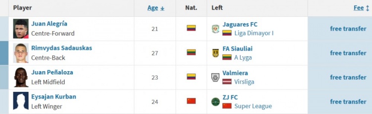 2月28日消息 根据德国转会市场网信息,广州队新引进的四位球员均是免签。