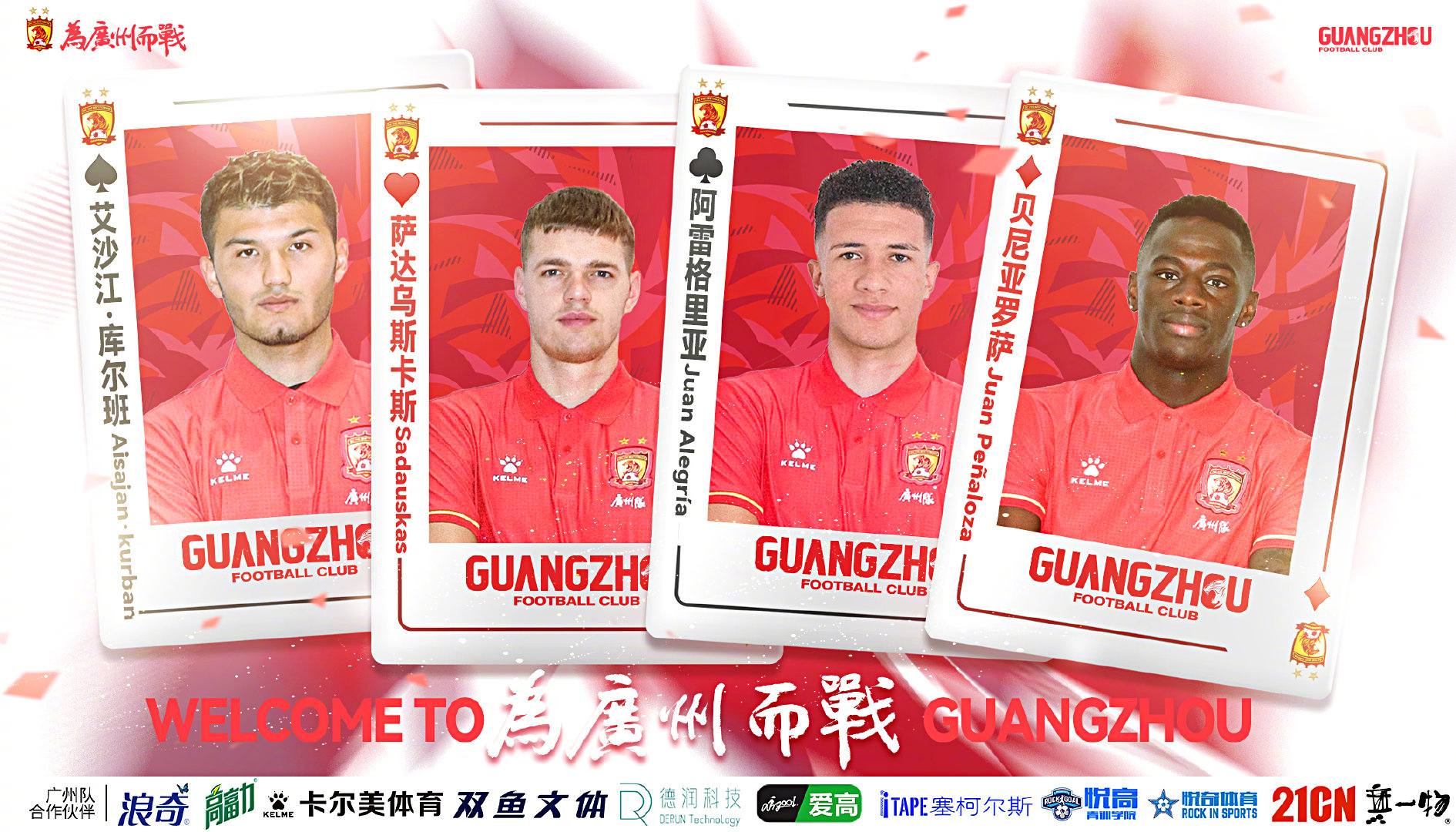根据广州队官方信息,艾沙江-库尔班司职边锋,成长于恒大足校,此前效力浙江队。萨达乌斯卡斯来自立陶宛,司职中卫;阿雷格里亚来自哥伦比亚,司职前锋;贝尼亚罗萨来自哥伦比亚,司职边锋。