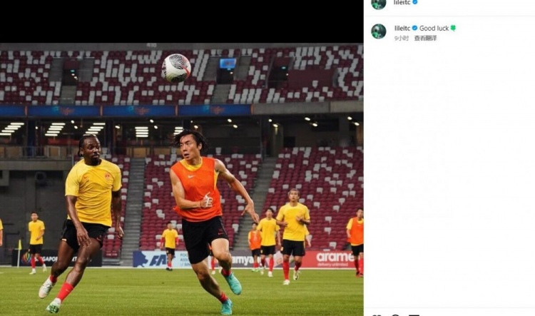 李磊在社媒晒出了他训练当中与费南多对抗时的瞬间特写,并为此配文“好运”,自然也是期待今晚国足客场与新加坡的比赛能有一个好的结果。