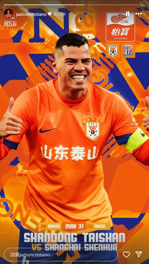 03月30日消息 北京时间3月31日19:35,中超第3轮山东泰山将在主场迎战上海申花。贾德松在社媒上晒出了赛前海报。