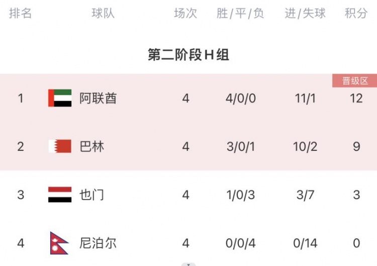 J组的阿联酋本轮客场3-0击败也门,以4战全胜的成绩锁定了出线权。