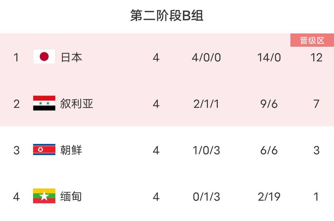 B组日本vs朝鲜世预赛取消,直接判日本3-0朝鲜,日本目前积12分提前晋级18强赛。