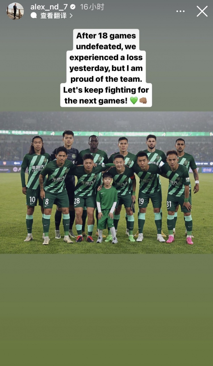 昨天,钱杰给在社媒晒出了此役球队的首发合影并写道:“在18场不败之后,昨天(6日)我们经历了一场失利,但我仍为球队而骄傲。让我们继续为下一场比赛战斗!”