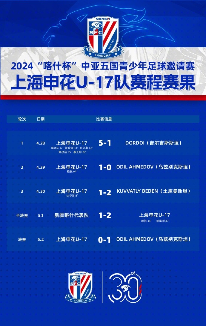 结束比赛后的上海申花U17队将于5月3号下午返程,备战将于5月下旬开打的2024中青锦标赛(职业俱乐部U-17)淘汰赛阶段比赛。