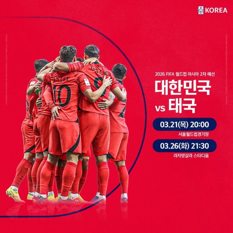 官方:韩国队3月21日19点、26日19:30,先主后客对阵泰国队