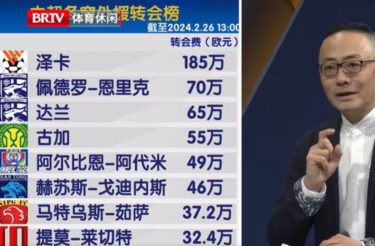 中超冬窗外援转会费:泽卡185万欧居首,佩德罗-恩里克70万欧第二