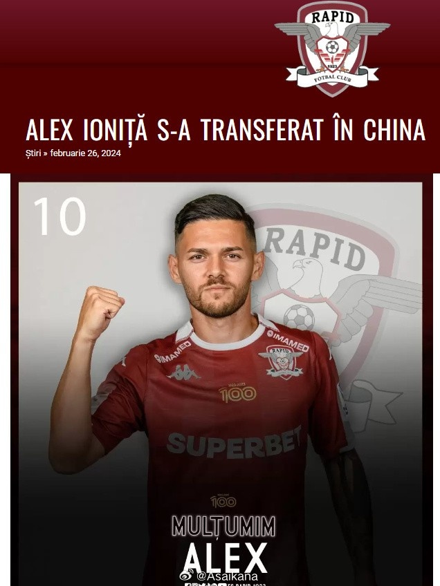 官方:布加勒斯特快速队边锋约尼查加盟云南玉昆