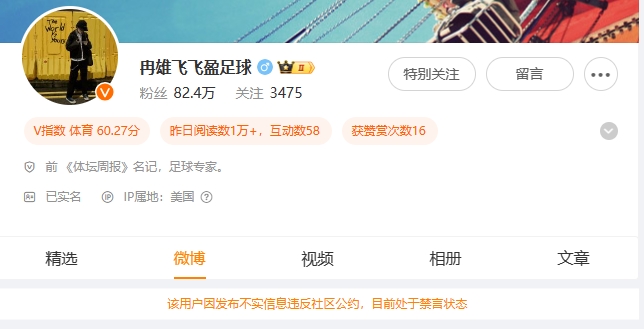 此前造谣称李铁一审被判无期,冉雄飞微博已被禁言