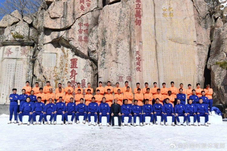 泰山队登顶泰山,34名球员参与新赛季全家福拍摄