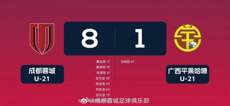 后备力量!U-21联赛第3轮,成都蓉城8-1战胜广西平果哈嘹