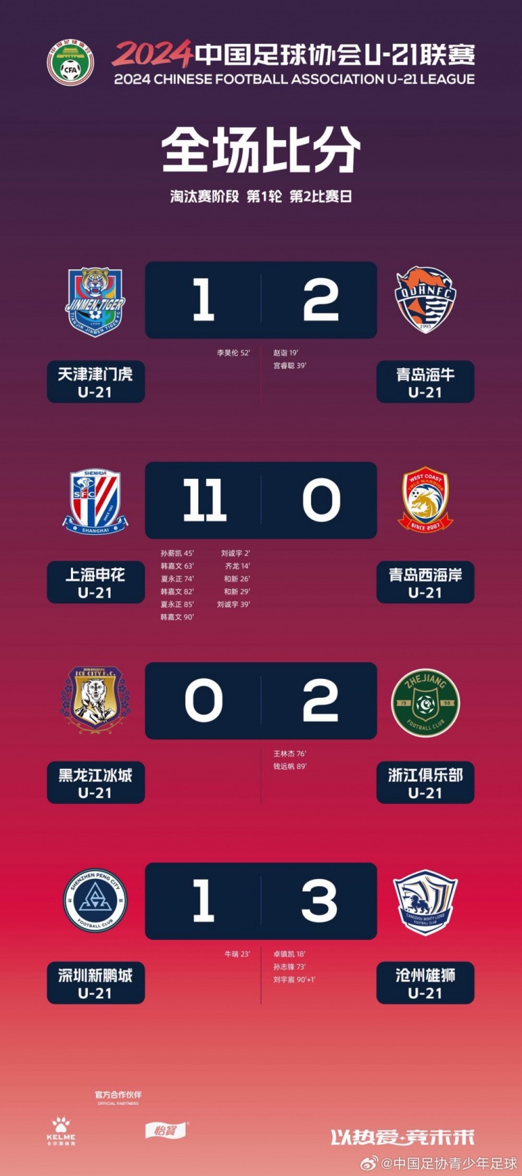 U-21联赛淘汰赛阶段第1轮 第2比赛日赛果