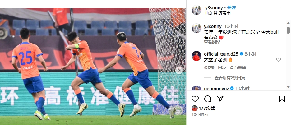传射建功!刘洋社媒:去年一年没进球了,有点兴奋,buff有点多
