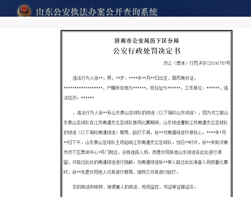 文明看球????山东泰山球迷徐某辱骂殴打南通球迷,被行政拘留13天